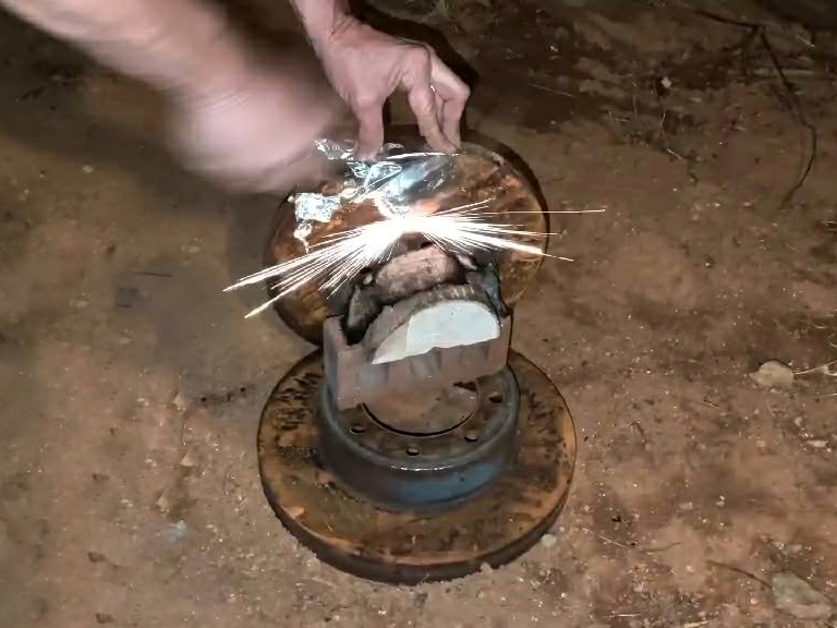 I was unable to acquire the large ball bearings needed to accomplish this feat and so resigned it to my bucket list. However recently I viewed a video that showed the use of a hammer, aluminum foil, a very rusty disc, and a treated cloth used as tinder to recieve the sparks.